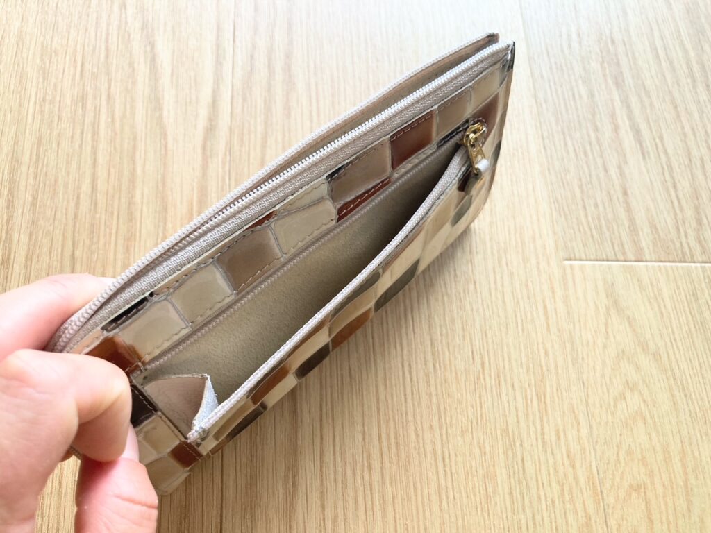 また、ファスナーレスの小銭入れは、L字ファスナーを閉めておけばこぼれたり散らばったりすることがありません。