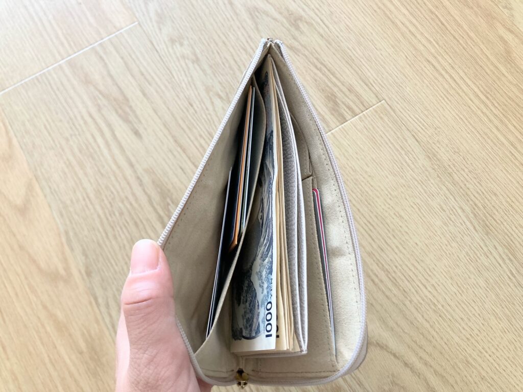 確かに一万円札も入れられますが、ファスナーを閉めたときにお札の角が折れちゃったり、変な跡がついたりすることがあります。