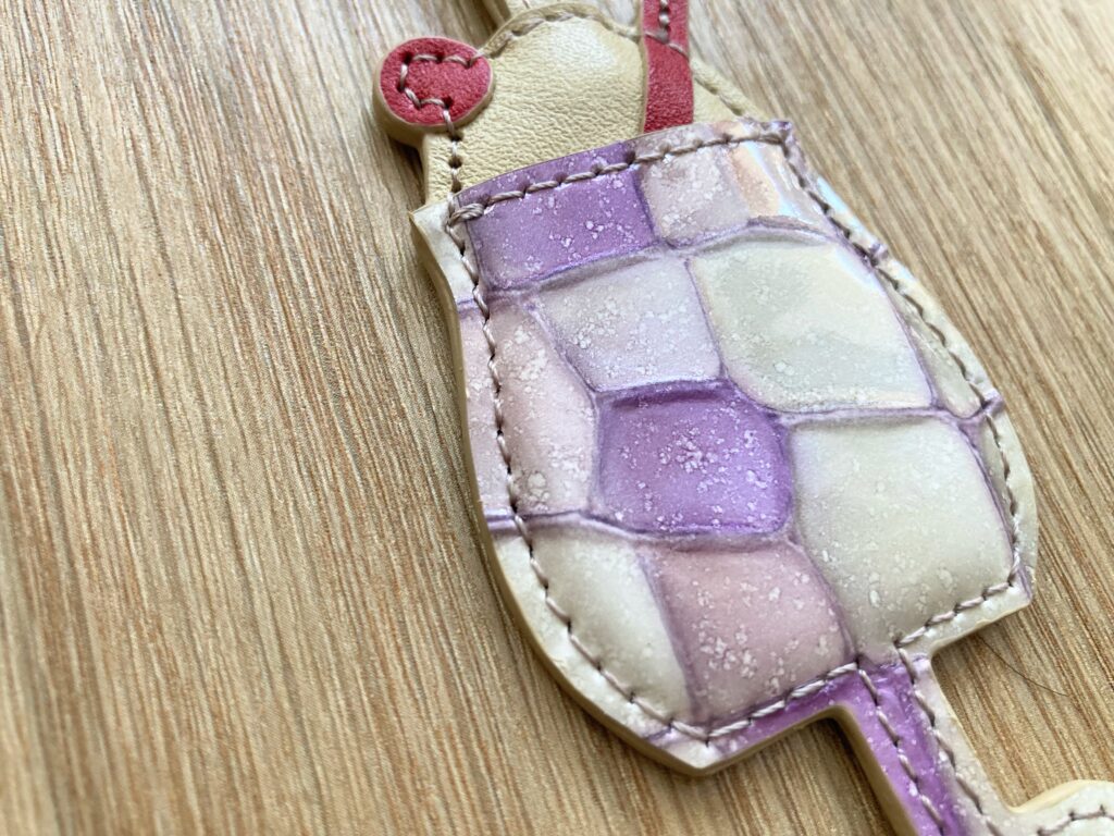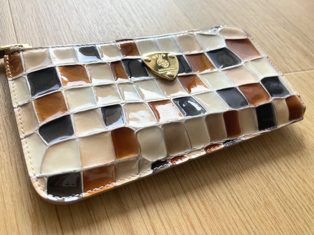 アタオの定番ともいえるステンドガラスレザーを使用しており、昔ながらの喫茶店をイメージしたようなデザインです。